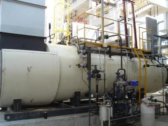 充分利用热能。燃油、燃气、燃煤等经过燃烧产生高温烟气释放热量,高温烟气先进入炉膛,再进入前烟箱的余热回收装置,接着进入烟火管,最后进入后烟箱烟道内的余热回收装置,高温烟气变成低温烟气经烟囱排入大气,整个过程充分利用热能,利用率高,浪费少,效益好。